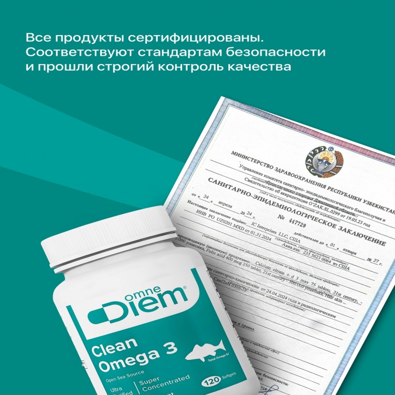 Omne Diem Toza Omega-3 — bu yuqori sifatli qo‘shimcha, u baliqlardan olinadigan toza omega-3 yog‘li kislotalarini o‘z ichiga oladi. Omega-3 yog‘li kislotalari organizm uchun zarur bo‘lib, yurak, miyaning, ko‘zlar va immun tizimining sog‘lom faoliyatini ta'minlashda muhim rol o‘ynaydi. Ushbu mahsulot, umumiy salomatlikni yaxshilash va organizmning turli tizimlarini qo‘llab-quvvatlashni xohlaydiganlar uchun ideal tanlovdir.